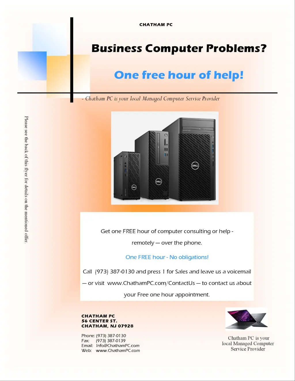This is why we offer each business in our area a free hour to try us out with NO obligations whatsoever - as per flyer.